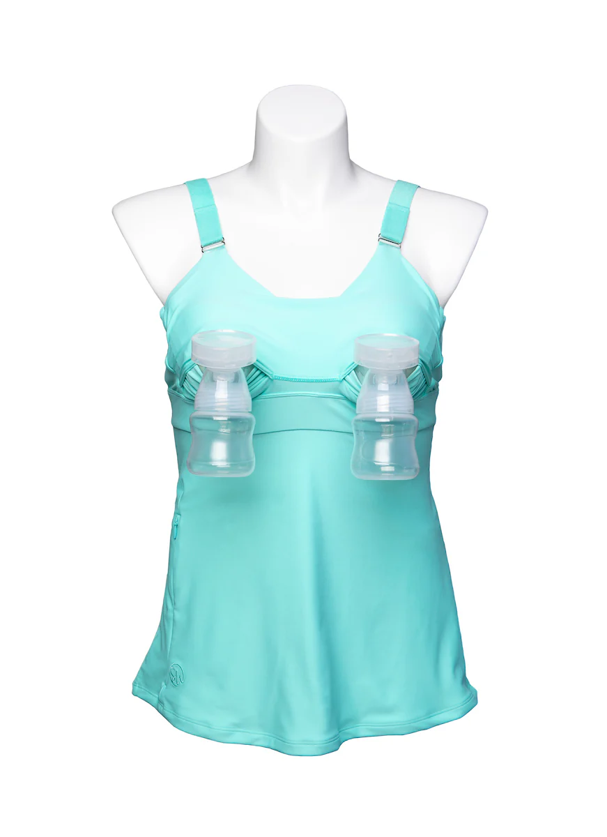 When Sarah was Exclusively Pumping for her daughter Maddy she LIVED in nursing and pumping tank tops, both at home with baby and at work under a cute cardi. So when we launched our (patent-pending) Journey® hands-free pumping bra, which was met with rave reviews and sold out in days at launch, she knew the tank, with a built in Journey® bra would be the next evolution for this product line.